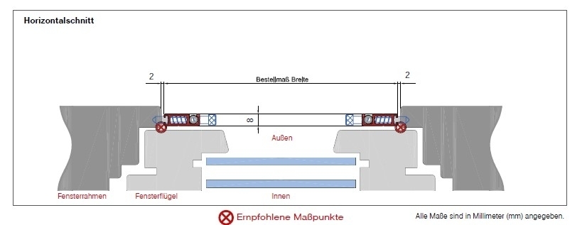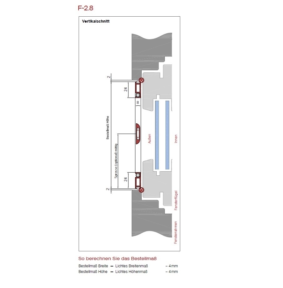 - Bestellbreite = lichtes Breitenmaß minus 4 mm