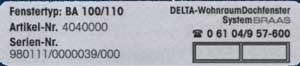 Öffnen Sie Ihr Fenster und Sie können die genaue Bezeichnung im Falz lesen. (Blechschild)