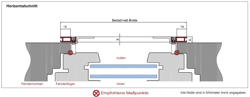 - Bestellbreite = lichtes Breitenmaß + 30 mm