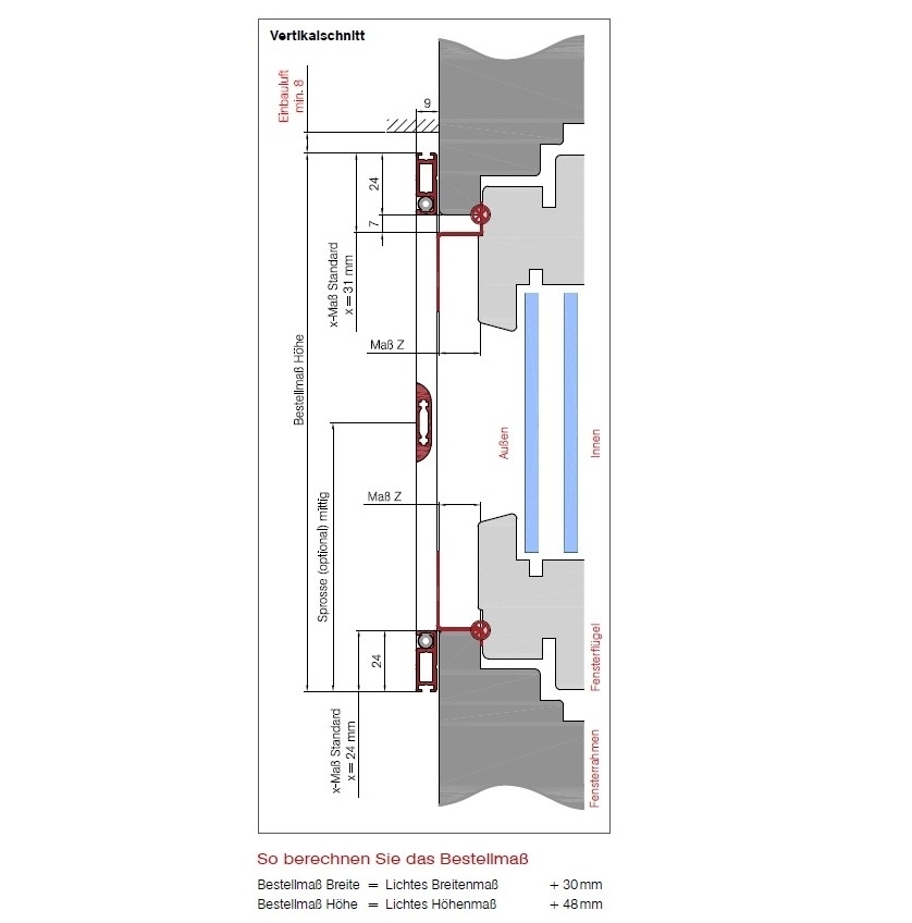 - Bestellhöhe = lichtes Höhenmaß + 48 mm