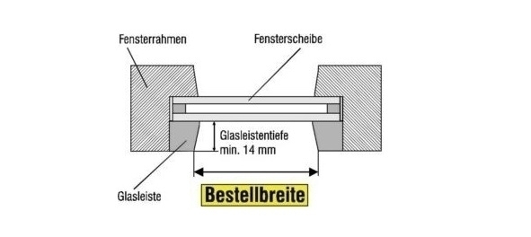 - Außenkante Glasleiste bis Außenkante Glasleiste = Bestellbreite (Glasleiste muss eben sein)