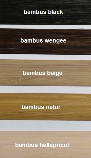 Die Bambusjalousie wird serienmäßig wie folgt angeboten: