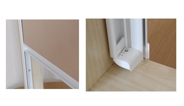 Das Stufenlossystem ist sehr komfortabel im Aufbau und Handhabung. In Verbindung mit dem Verdunkelungsstoff , siehe Konfiguration, erziehlt man einen Abdunkelungseffekt, der bei Innenrollos kaum größer sein kann.