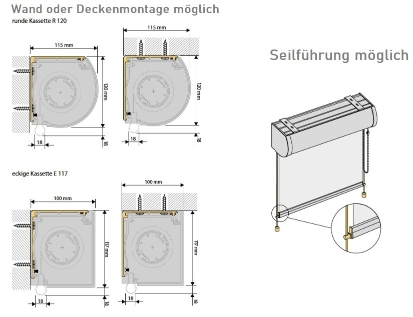 Alle dazugehörigen Teile dazu farblich passend. Wand oder Deckenmontage möglich. Der Behang ist optimal geschützt. MAXI Rollos in Übergrösse können mit Motor oder mit Kettenzug bedient werden. Bestellen Sie zum günstigen Preis im Shop. Lieferung auch in die Schweiz, Österreich und ausgewählte EU- Staaten möglich.