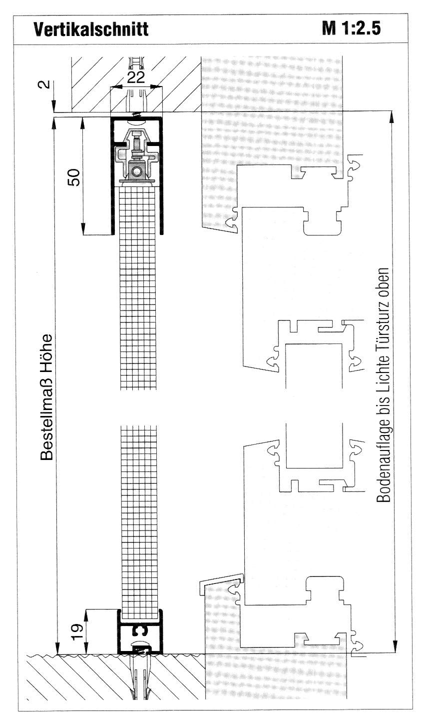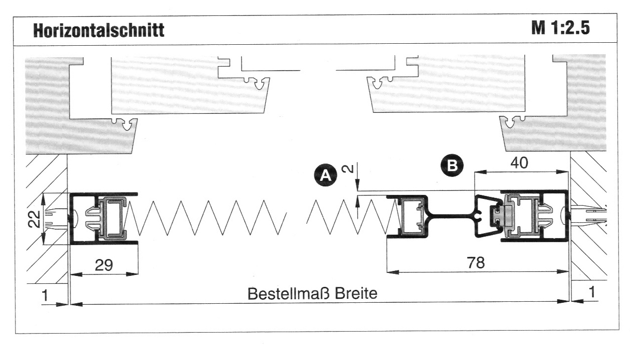 Bei der Montage vor eine Nische, müssen die Schienenbreiten allseitig addiert werden. Die Bestellmaße sind immer die Fertigmaße / Außenkantenmaße der fertigen Plisseetür)