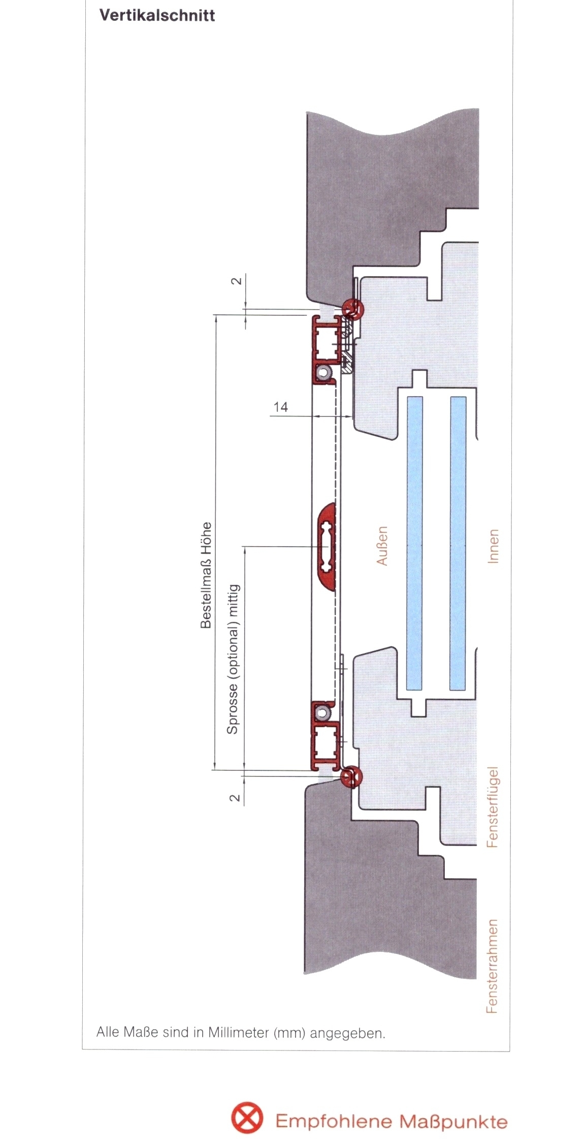 Diese Insektenschutz- Rahmen werden hauptsächlich verwendet, wenn der Flügelfalz leicht schräg ist und Fenster gerade anschlägt ohne irgendwelche überstehenden Teile. Montage in die Flügellichte.