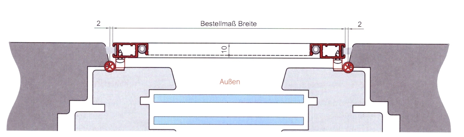 - engstes Breitenmaß minus 4 mm = Bestellmaß Breite