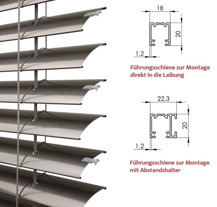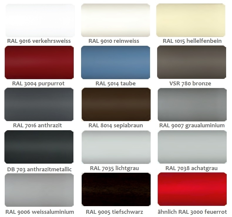 - 80 mm gebördelte Lamellen oder Flachlamellen - max. Breite 400 cm x 400 cm Höhe - Kurbel als Standardbedienung, Motor mit Mehrpreis (SOMFY) - Oberschiene in verzinktem Stahlblech - Endschiene in elox, andere Farben ohne Mehrpreis - eloxierte Führungsschienen, andere Farben ohne Mehrpreis - viele Lamellenfarben (siehe Konfigurator) - Schienenführung oder Seilführung - NICHT IN DIE SCHWEIZ LIEFERBAR