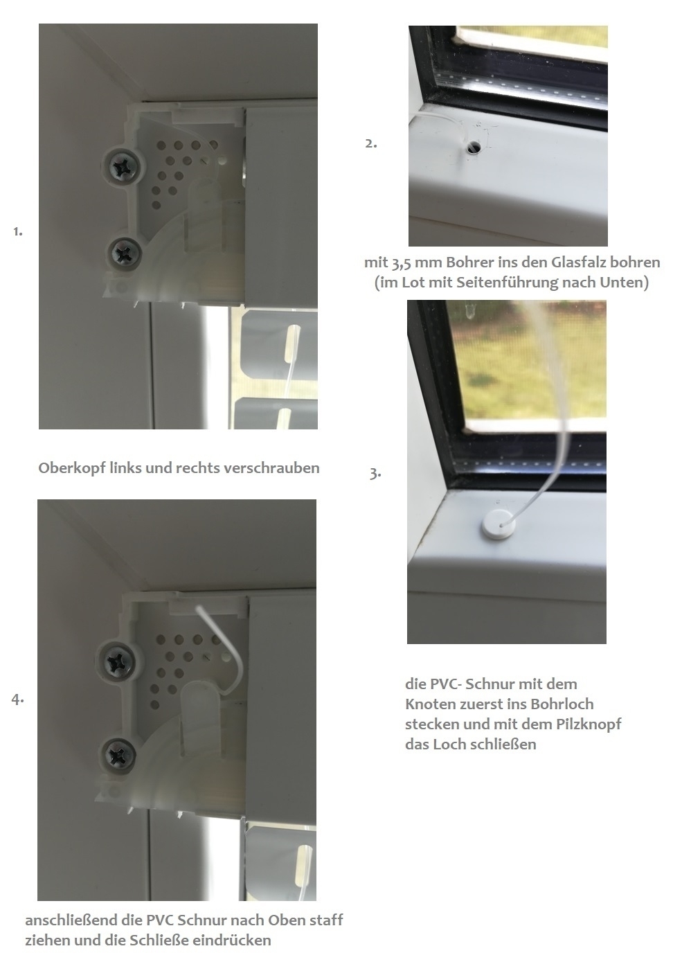 Bild zeigt Endschiene fertig montiert. Der seitliche Pendelschutz verhindert das Pendeln bei gekipptem Fenster.