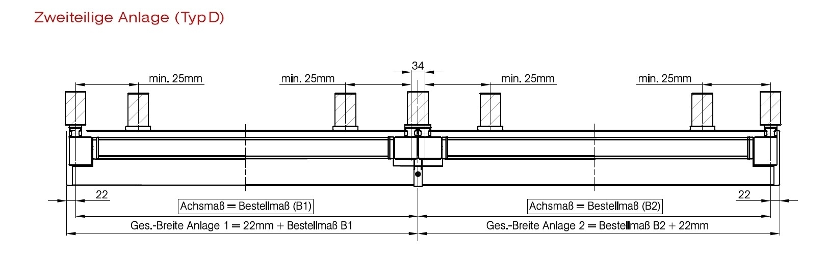 Dieses entspricht dem Mittelpunkt des Befestigungspunkt der Führungsschienenhalter.