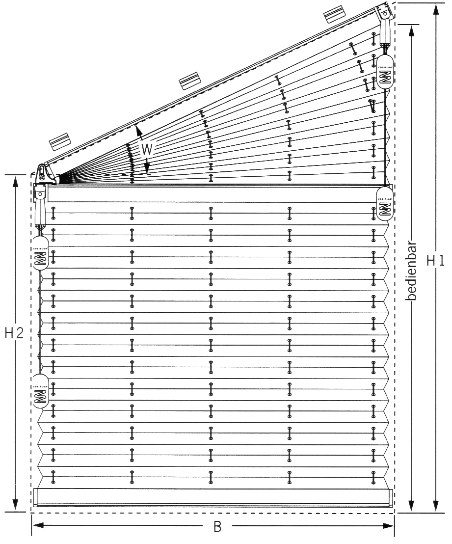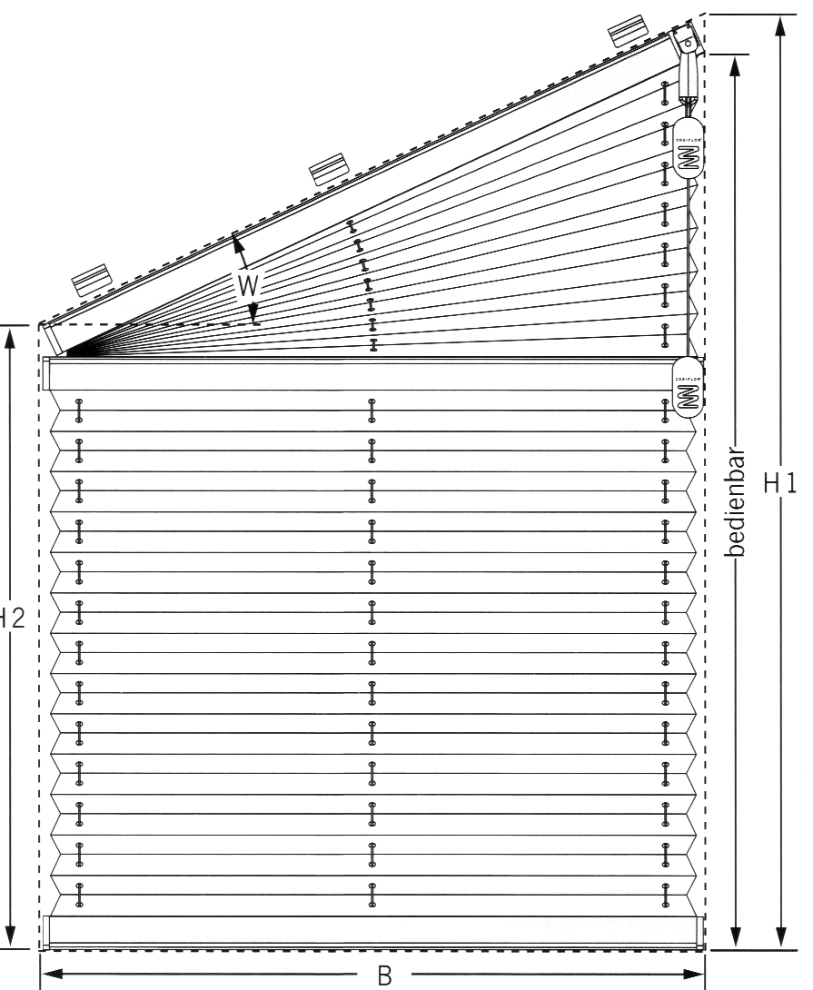 - Messen Sie das Fensterflügelmaß in der Höhe von Oberkante zu Unterkante Flügel = Bestellhöhe H 1 und entsprechend H 2
