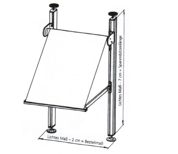 Für Stabilität sorgen die stabilen Ausfallarmen und innenliegenden Federn für eine optimale Tuchspannung. Dadurch wird eine Maximalbreite von 500 cm und eine maximale Ausstellung von 150 cm erreicht. Standardmäßige Ausladung ist 90 Grad. Bei Ausladung bis 120 Grad (Aufpreis), wird der Stoff länger gefertigt. Es stehen drei verschiedene Ausfallmaße zur Verfügung: 100 cm, 125 cm und 150 cm.