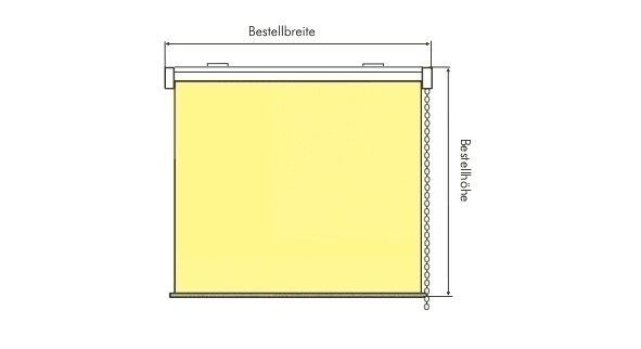 Achtung: Das bestellbare Breitenmaß ist das Außenkantenmaß. (von Außenkante Kassette bis Außenkante Kassette) Das Stoffmaß ist immer ca. 3 cm schmäler (davon die Kettenseite um ca. 2 cm, fertigungstechnisch bedingt) Das bestellbare Höhenmaß wird so angegeben wie gewünscht und auch so gefertigt.