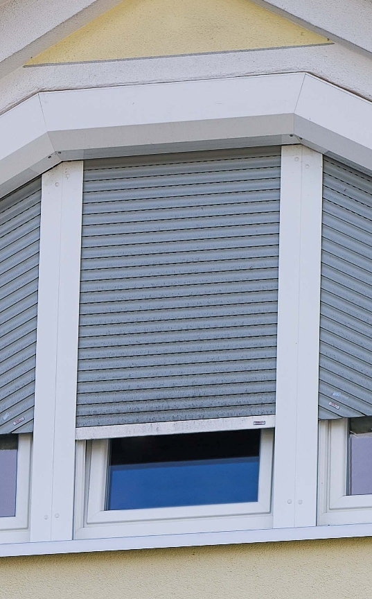 LINKS, der Schrägrollladen ist Rechts von Innen gesehen